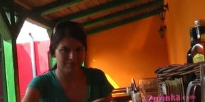 Horny Zuzinka is fingering herself in public at a bar